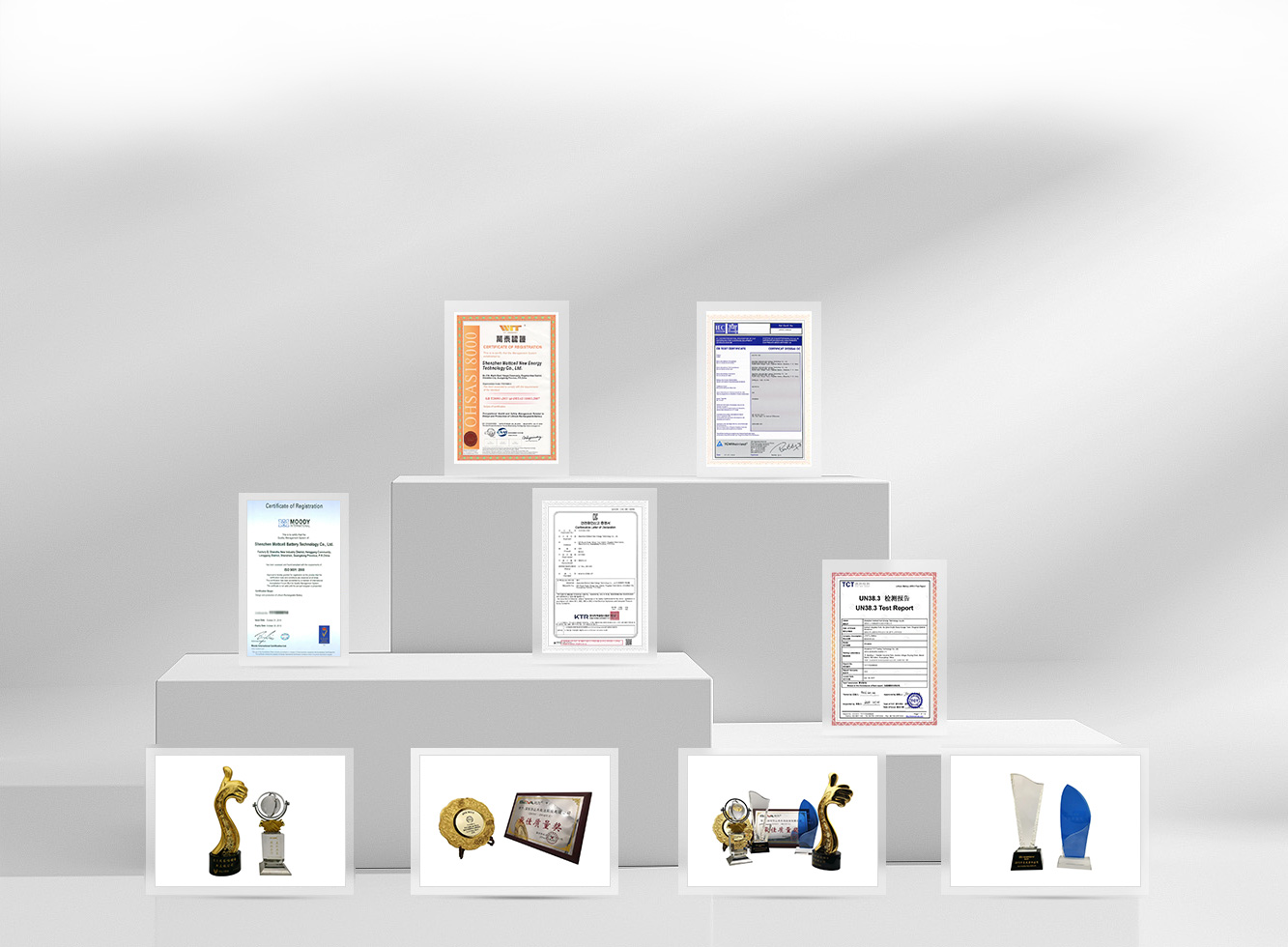 公司先后獲得國家高新技術企業、深圳市“專精特新”企業、綠色工廠、智能制造工廠、大灣區知名品牌等多項資質與榮譽,并建立了完善的質量、環境及職業健康安全管理體系,通過ISO 9001、ISO 14001、OHSAS 18001、IATF 16949等體系認證。多款產品符合并通過UL、CE、CB、IEC、UN38.3等國內外權威標準與檢測認證。